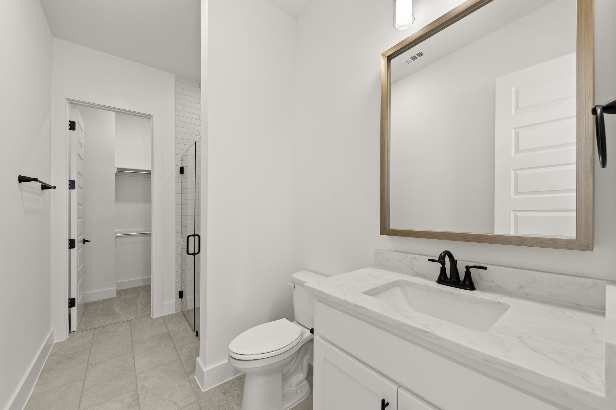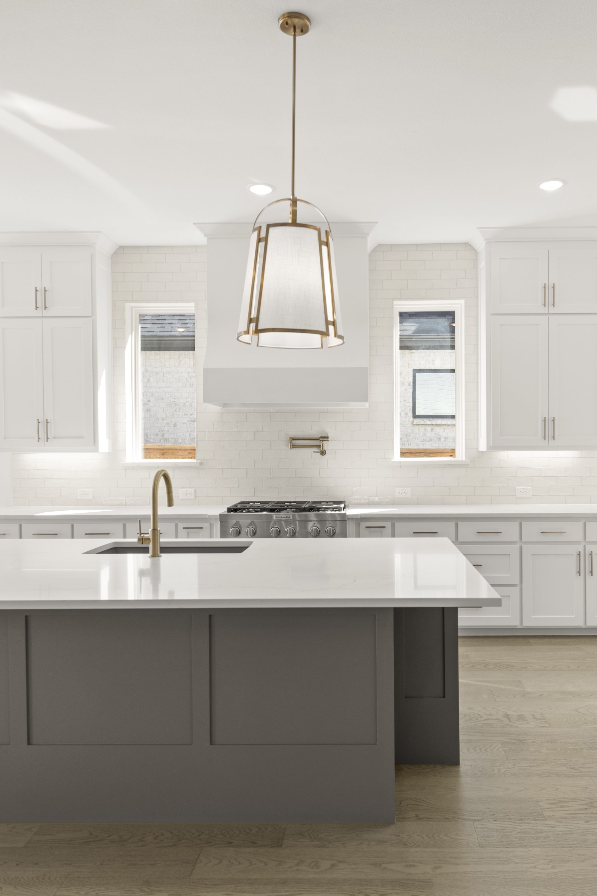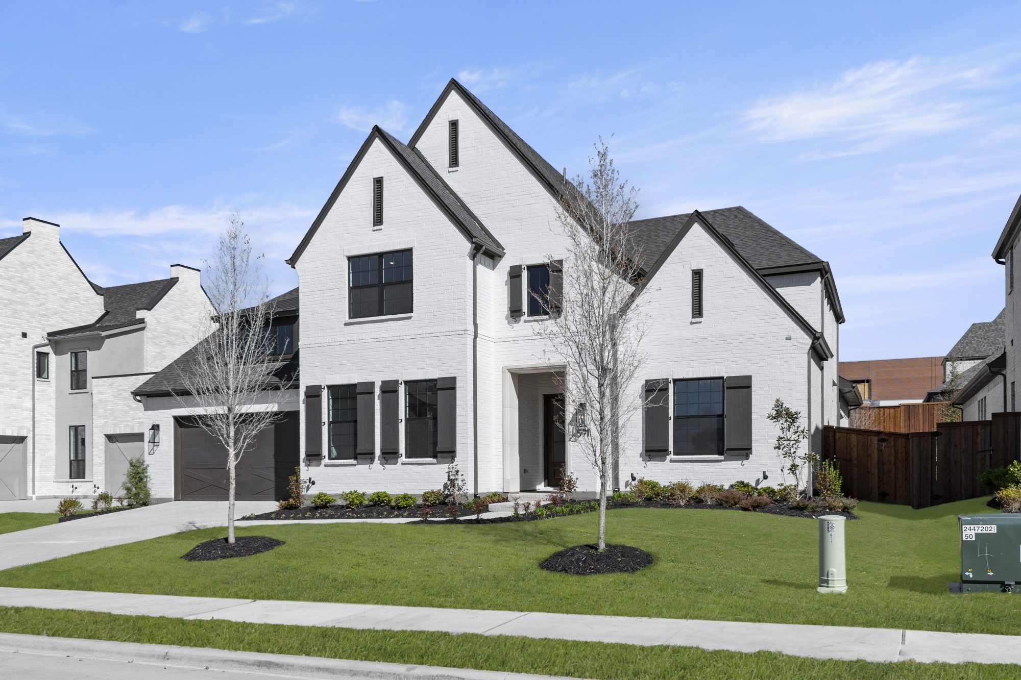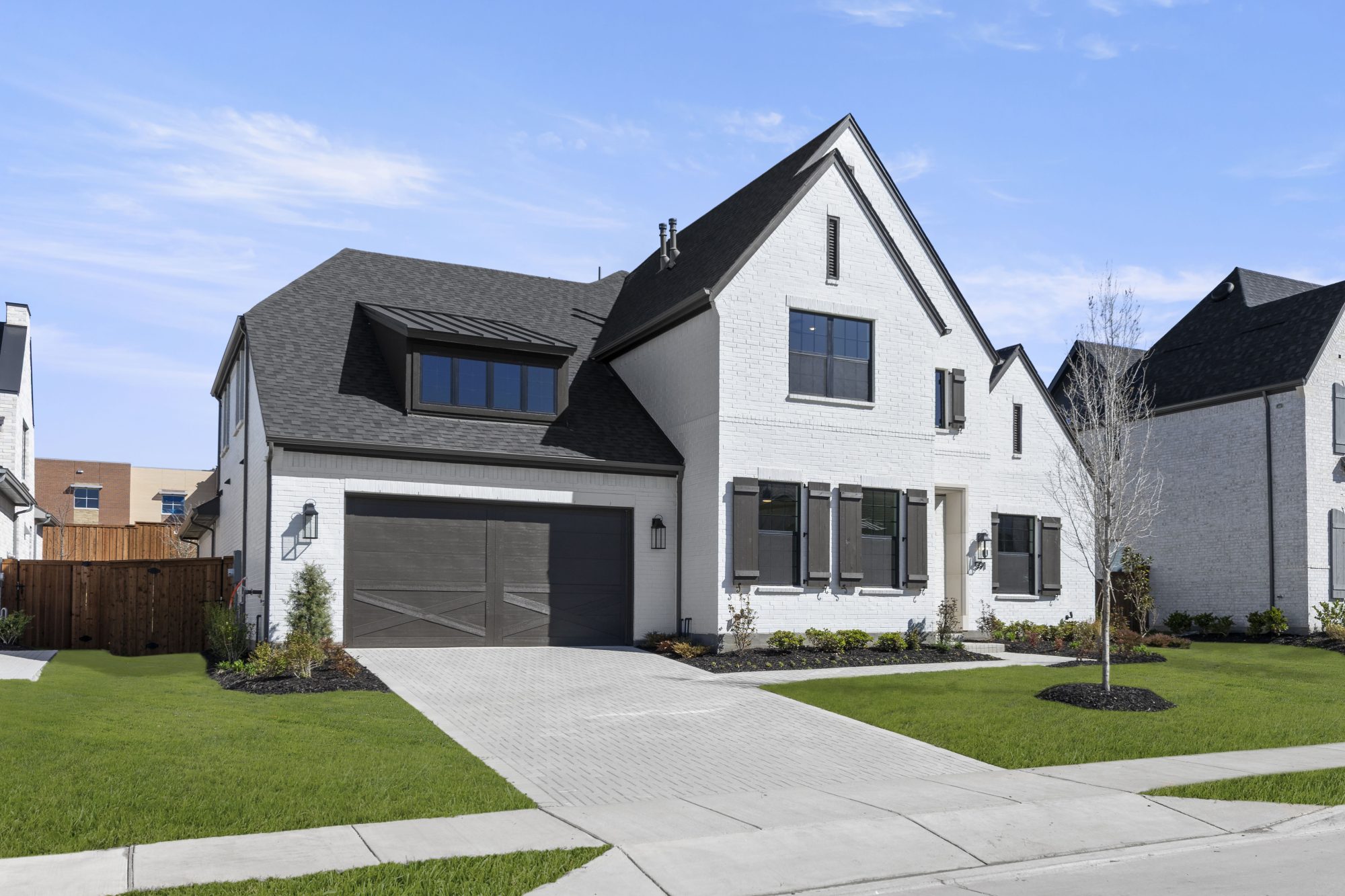 Ideal light color painted brick house with black shingles and black windows. Welcoming 19’ entry with a curved staircase. The Chef’s kitchen includes a large island, KitchenAid gas rangetop, double ovens, Blanco single undermount sink and quartz countertops. The luxurious owner’s bath includes a freestanding tub, large separate vanities and walk-through from the owner’s closet that leads to the laundry room. Every bedroom includes an ensuite bath and large closet.